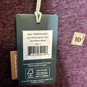tentree Men's hemp tee shirt new size large mulberry heather