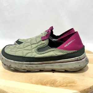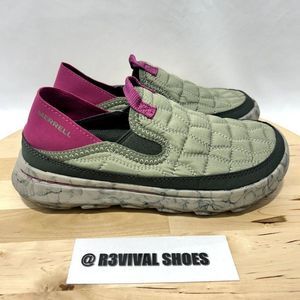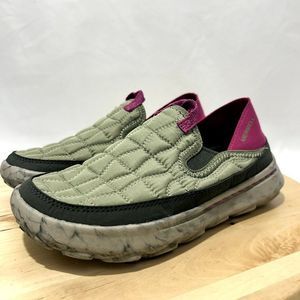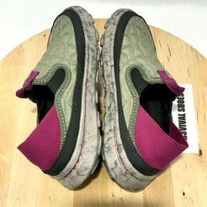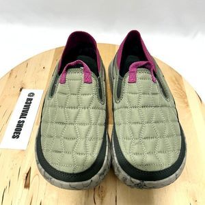 Run wide. Comfortable quilted flats. Gray body with pink accents. Durable sole for everyday wear. Love these and wish they fit me.