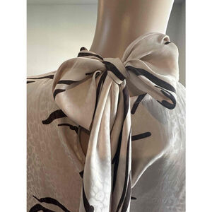 Nine West Woman Brown Abstract Print Crew Neck Smocked Blouse Lg Office Business