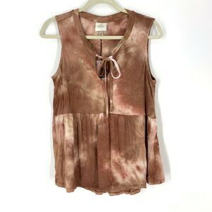 Knox Rose Tie Front V-Neck Tie Dye Rust Tank Top Women's Size Medium