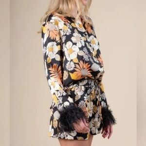Vintage Retro Front Button Shirt w/ Faux Fur Trim & Shorts Set, Pre-Loved, Sz. L