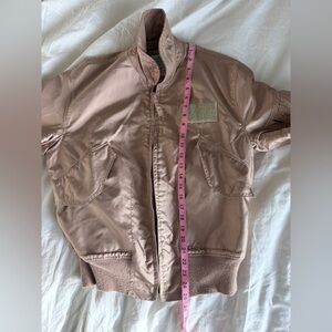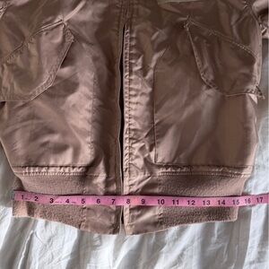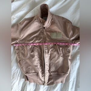 Stylish Vintage bomber jacket. Soft pinkish bronze color. Ribbed cuffs and hem. Classic design. I found this at a cool vintage shop on a trip to Maine. Loved it, but didn’t wear it enough to keep it!