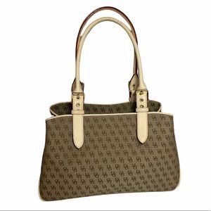 Dooney & Bourke Buckle Satchel Tote Bag Purse ID Card DB Signature Leather Trim