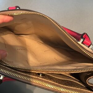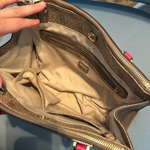 Guess Pink and Brown Satchel with Logo Pattern