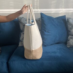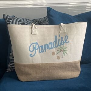 Paradise Women’s Resort Ready Woven Tote Bag Tan Blue Snap Closure Large