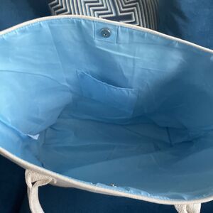 Paradise Womens Resort Ready Woven Tote Bag Tan Blue Snap Closure Large
