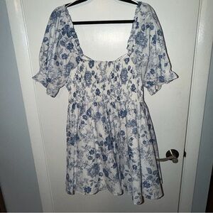 audrey parks dress, francesca’s dress, blue floral mini dress, puff sleeve dress, spring wedding guest dress, bridal shower dress, baby shower outfit, garden party dress, fit and flare mini dress, feminine spring dress, daytime wedding guest, brunch dress, cottagecore style dress, vacation dress women, spring event dress size large, nwt floral dress