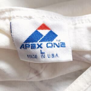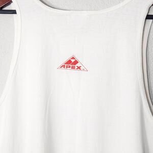 Vintage Chicago Bulls tank top by Apex One, made in the USA. Men’s size large. Heavy cotton fabric with that authentic 90s weight and fade, featuring a bold red Bulls logo across the chest and subtle embroidery at the hem. The cut is relaxed and perfectly worn-in, carrying that unmistakable street energy of vintage athletic wear.