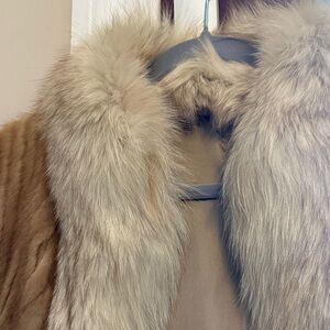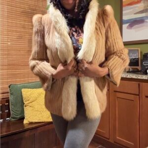 Vintage Blonde Ribbed Mink Fur Jacket with a White Fox Fur Trim