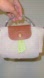 Stylish mini bag with a cream body. Features rich brown accents. Ideal for everyday use.