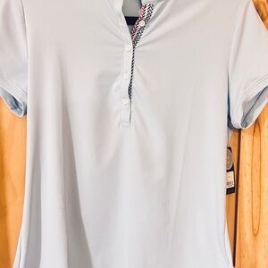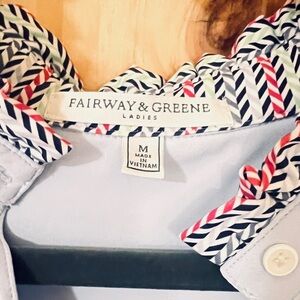 Fairway & Greene Rosie Ruffle Dream Blue Golf Shirt M NWT