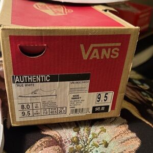 Classic Vans sneakers. Crisp white canvas. Iconic style. New in box