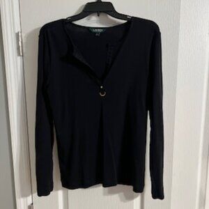Lauren Ralph Lauren Women's Large Black Long Sleeve T-Shirt Gold Metal Accents