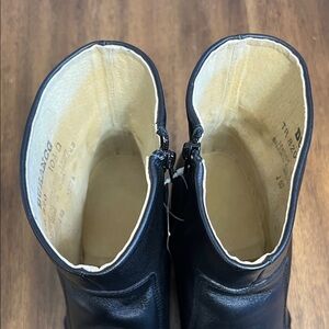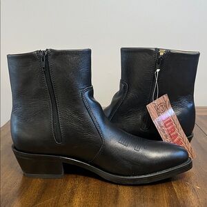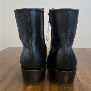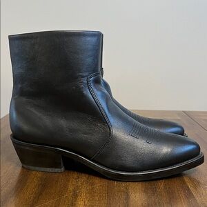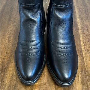 Sleek black leather boots. Classic western design. Durable and stylish.