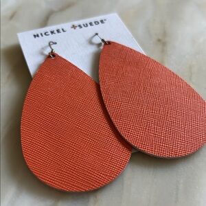 Nickel & Suede Leather Tangerine Teardrops NEW Nickel Free