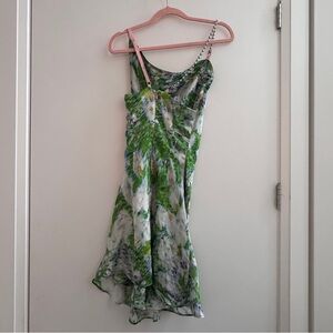 “Sleeveless paneled stretch satin short dress featuring multicolor floral pattern. Mismatched adjustable elasticized and fixed ball chain shoulder straps. Cowl neck collar. Zip closure at back. Fully lined. Pink and silver-tone hardware.Available exclusively at SSENSE.Supplier color: Floral print