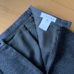 Celine wool and cashmere blend pencil skirt, new without tags, gained weight after purchase and never got to wear it! Charcoal grey pencil skirt with accent pleats, super flattering on.