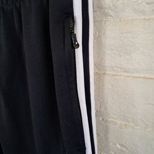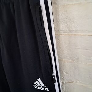 Comfortable and stylish, these Adidas track pants are perfect for active days. Featuring a sleek black design with white accents, they offer both style and functionality.