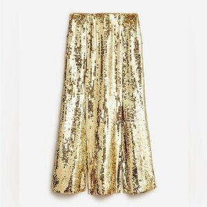 Dazzle in this gold sequin J. Crew maxi skirt. Covered in shimmering gold sequins. Ideal for glamorous events. Two slits in front and two in back. Never worn / with tags. Hits around ankle on 5’4”.