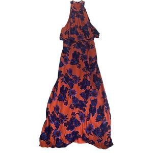 Lovers and Friends Golden Ray Maxi Dress Sz M Orange Blue Floral Wedding Date