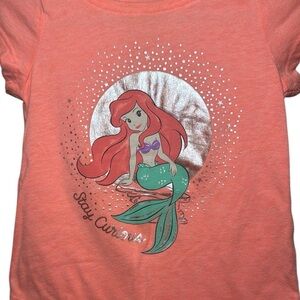 Jumping Beans Girls Orange Little Mermaid Ariel T-Shirt Size 18 Months. Features include orange t-shirt with Ariel graphic, “stay curious”, 60% Cotton 40% Polyester. Good worn condition, no notable flaws. Smoke free home.