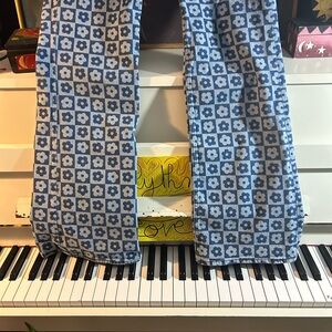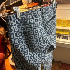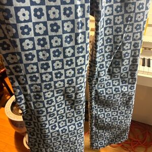 Stylish blue patterned flare jeans from H&M. Perfect for a trendy look.