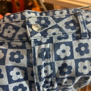 H&M Divided Rare Retro Floral Blue Patterned Flare Jeans Size 10