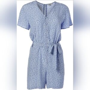 Rails Women’s Sophia Sky Blue Daisies Romper Belted V-Neck Short Sleeve Size Med