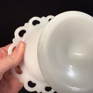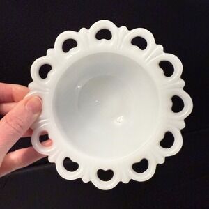 Vintage Anchor Hocking Milk Glass Lace "Old Colony" 5.25" Sherbet Bowl Pedestal