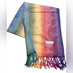 Brighten your look with this colorful pashmina scarf. Features a stunning blend of vibrant shades.