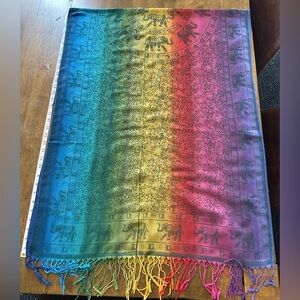NWOT Rainbow Elephant Print Bohemian Scarf