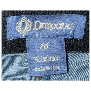 Step into comfort and confidence with these Democracy “Ab”solution dark‑wash skinny jeans in a women’s size 16. Designed with the brand’s signature figure‑enhancing fit, these jeans offer a flattering silhouette with excellent stretch and recovery. The dark indigo wash features gentle fading for a naturally lived‑in look, while the signature “D” hardware and contrast stitching add a stylish, quality finish.
