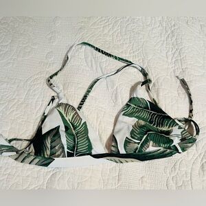 Stylish bikini set with a tropical leaf print. Features a strappy top and matching shorts. Medium (top has no size tag) GUC