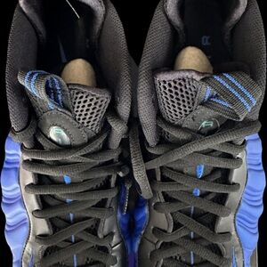Sleek Nike Foamposite shoes. Striking black and blue design. Superior comfort and style.