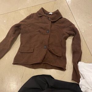 Chic double-breasted design. Rich dark brown color. Perfect for stylish layering.