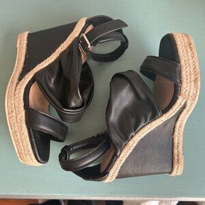 Qupid Cascade Wedge Sandal Espradrille Vegan Leather Size 6.5 Black Sandal