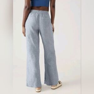ATHLETA Chambray Blue RETREAT LINEN WIDE LEG Pants Sz 6