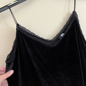 Divided cropped tank size medium. Tank is a crushed velvet style with lace around the trim. In good used condition. Straps are not adjustable.