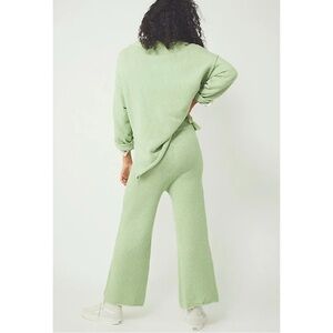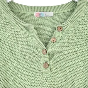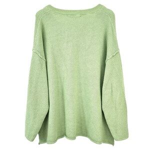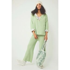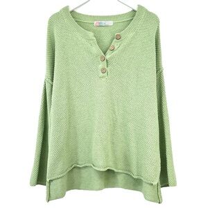Free People FP Beach Hailee Sweater - Green Waffle Knit Slouchy Henley Top sz M