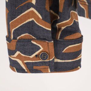 J. MCLAUGHLIN Betty Shirt Lyford Jersey Stretch Geo Print Brown Black Size XL