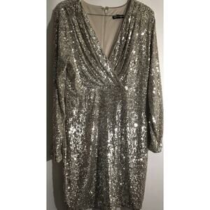 Express Women's Size Medium Metallic Sequin Dress Long Sleeve Cocktail Party