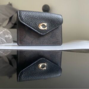 This Coach Tammie Card Case is the perfect minimalist accessory for carrying your essential cards and cash. Crafted from durable Signature coated canvas and refined pebble leather, it features a chic gold-tone "C" hardware snap closure.