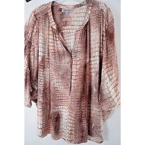 Jennifer Lopez JLO Sz 1X Abstract Alligator /Animal Print Boho Blouse Flowy Top