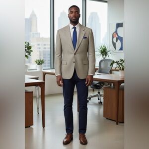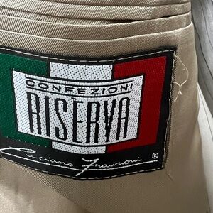 CONFEZIONI RISERVA EXCLUSIVELY FOR DILLARD’S COLOR TOUPE AND CREAM, SIZE 44R. IN GREAT TO EXCELLENT CONDITION. FABRIC IMPORTED FEELS LIKE SILK AND WOOL BLEND.🔥⚜️💯💙😎