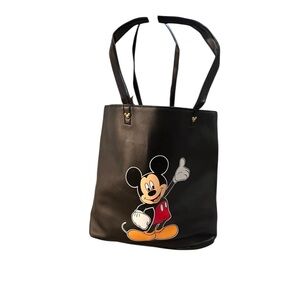 Stylish Disney tote set with Mickey and Minnie designs. Features a chic black and cream color scheme. Perfect for Disney fans. Black Mark on white part of tote.