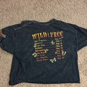Stylish crop top with vintage butterfly graphic. Features vibrant colors on a black background. Perfect for casual wear.
