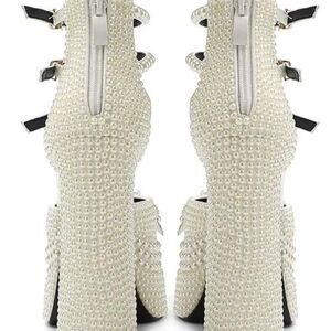 New White Pearl Platform Heels Size 9.5 | Triple Strap Bridal Wedding Party Pump