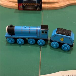 Thomas & Friends Wooden Railway Logan and the Big Blue Engines Set, EUC