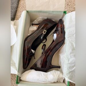 NWB Made-in-Italy Colette cap-toe pumps in tortoise-print leather, 8.5