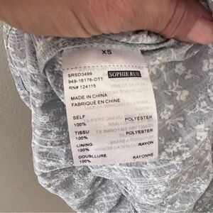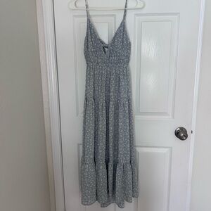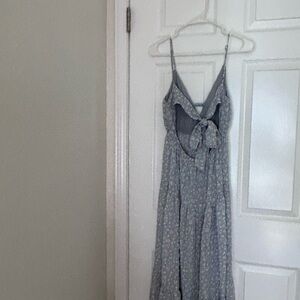 Tiny white floral and light blue sleeveless dress with cutout front and tie back, elastic bodice by SophieRue. Lightly lined bra cups. Excellent used condition.